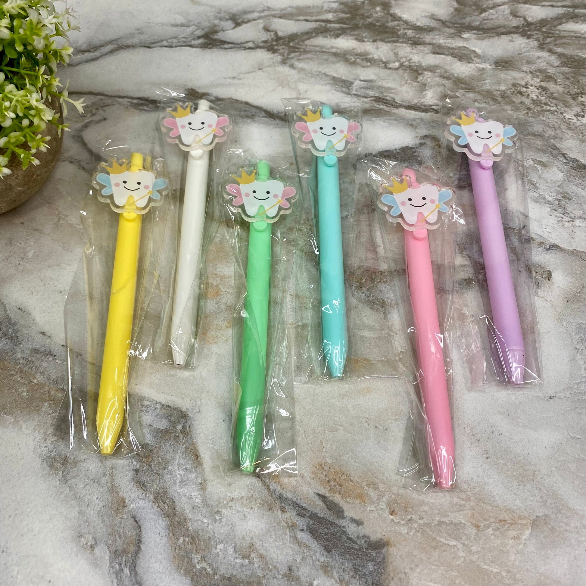 Gorgeous plastic pen with metal tip and acrylic tooth fairy topper