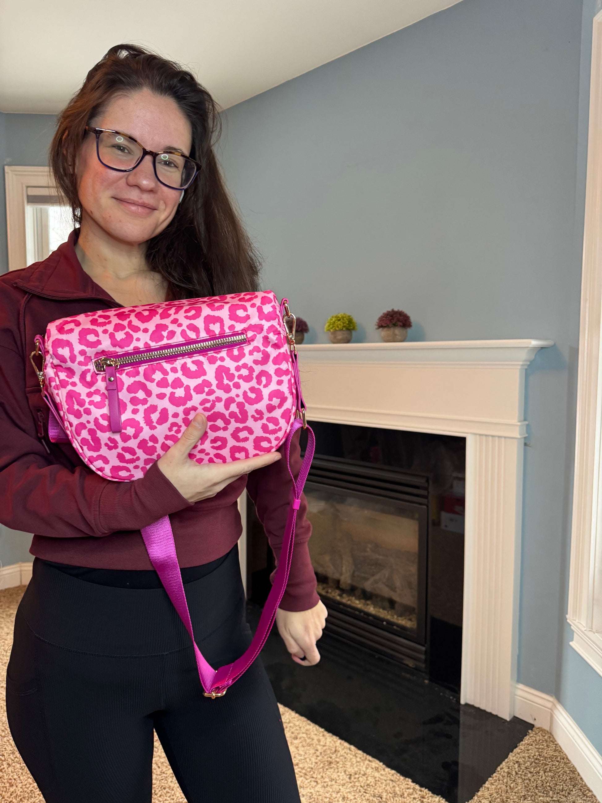 The Roni Nylon Crossbody - Animal Print Hot Pink
